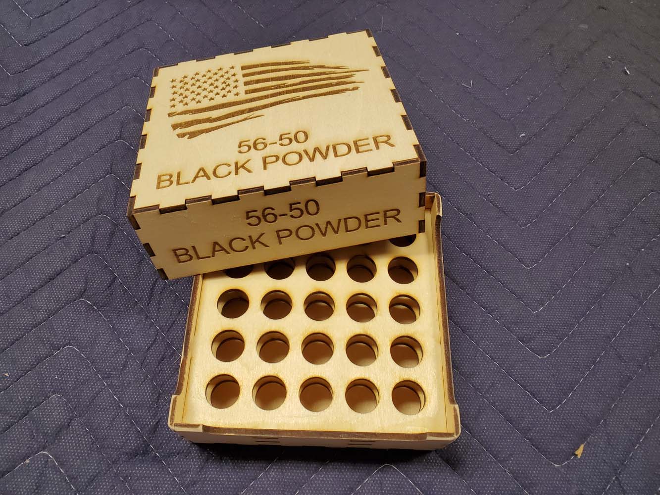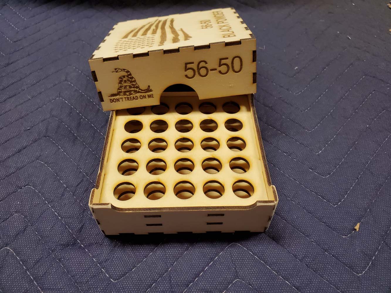 56-50 Ammunition Storage Box. Holds 25 rounds.
